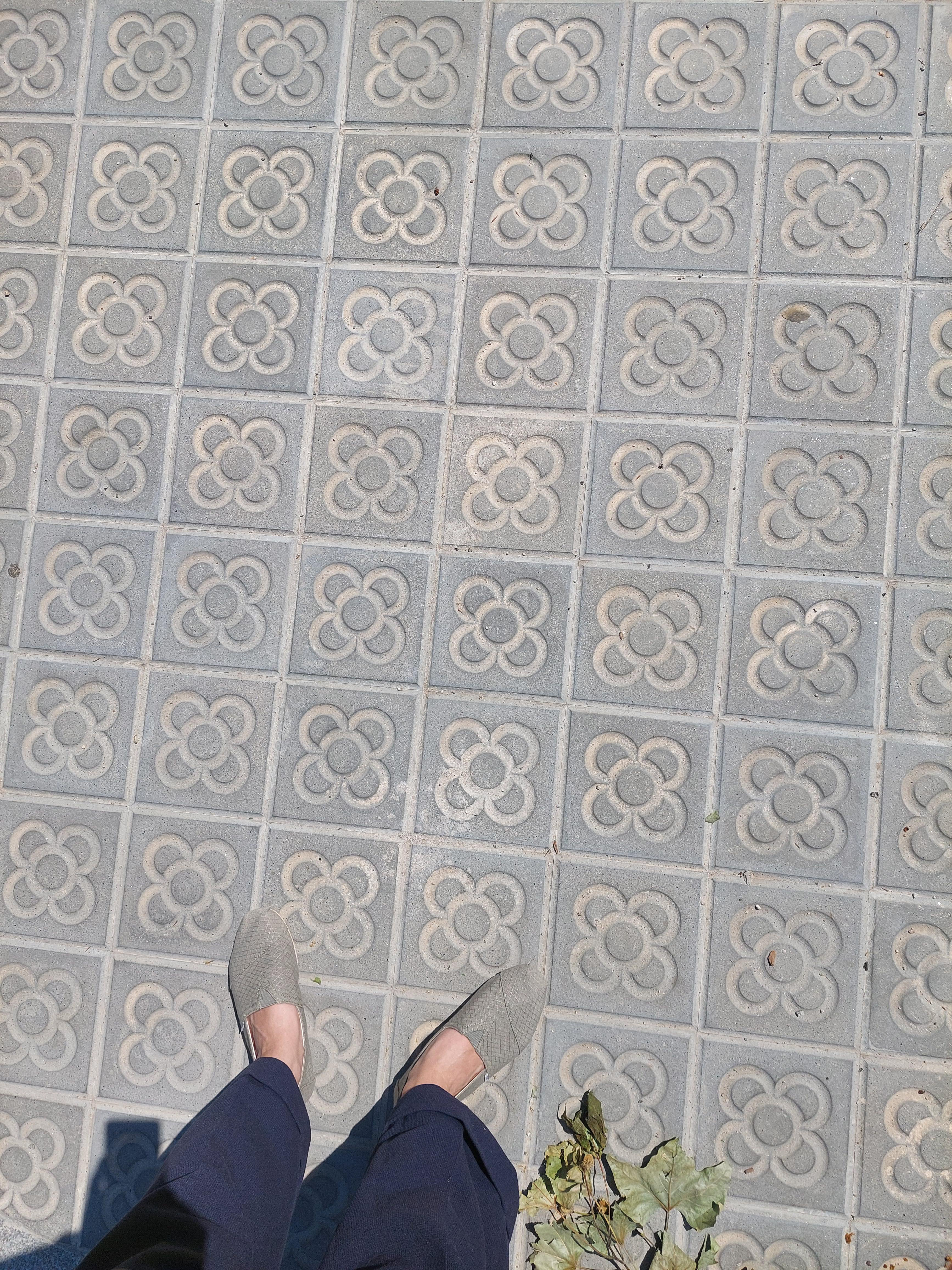 Inspired by the small tiles that pave the sidewalks all over Barcelona. Walking through the streets, I loved how the simple shapes create a quiet rhythm beneath your feet. This pattern brings a bit of that playful, lively feeling into design — a small moment of Barcelona wherever you are.
